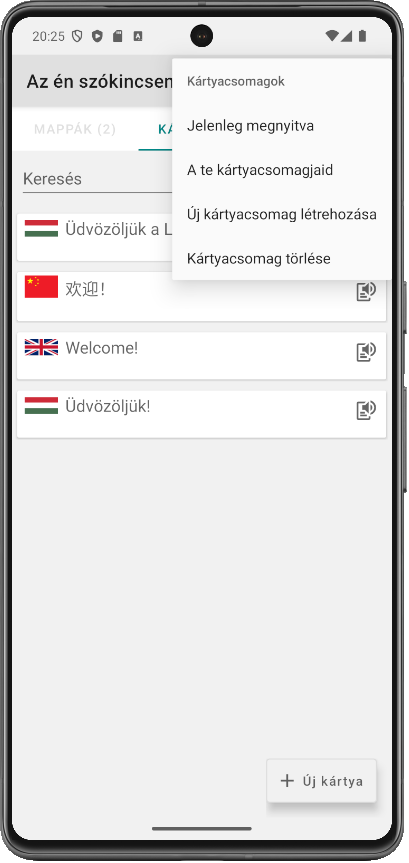 Több kártyacsomagot is létrehozhatsz.