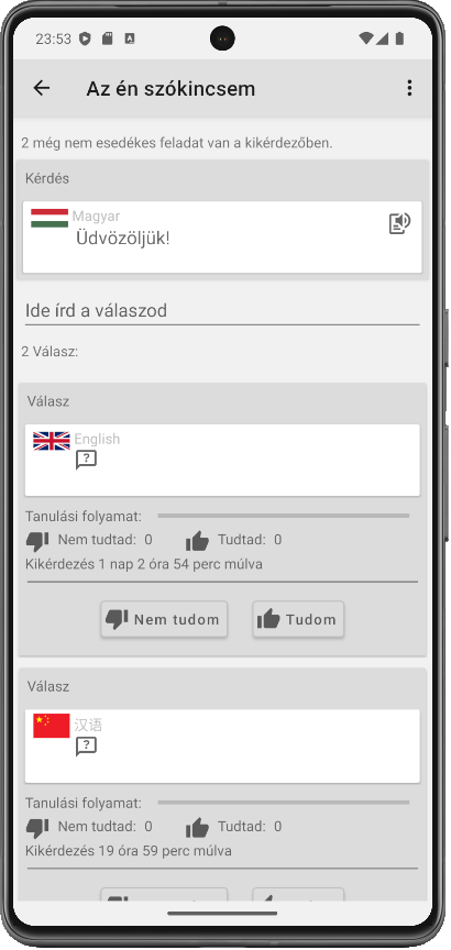 A szókincs-kikérdező annyiszor fog kikérdezni, amennyiszer szükséges – egészen addig, amíg el nem éred a tanulási célodat.