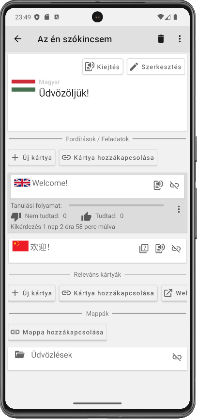 A jó hír: több kártyát is összekapcsolhatsz fordításként, akár különböző nyelveken.