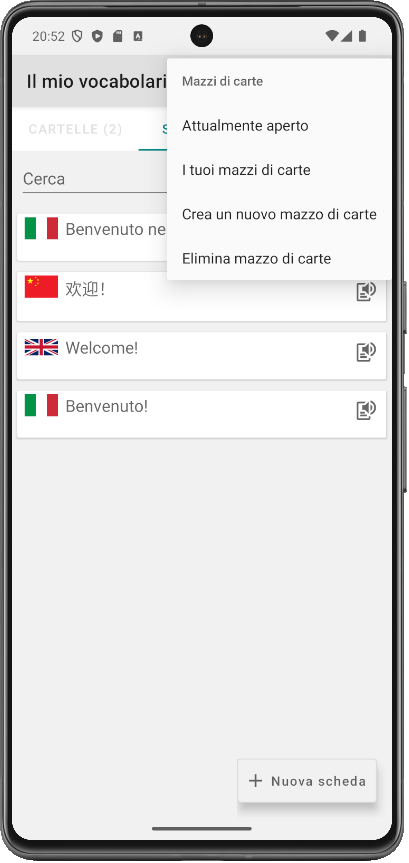 Puoi creare più mazzi di carte.