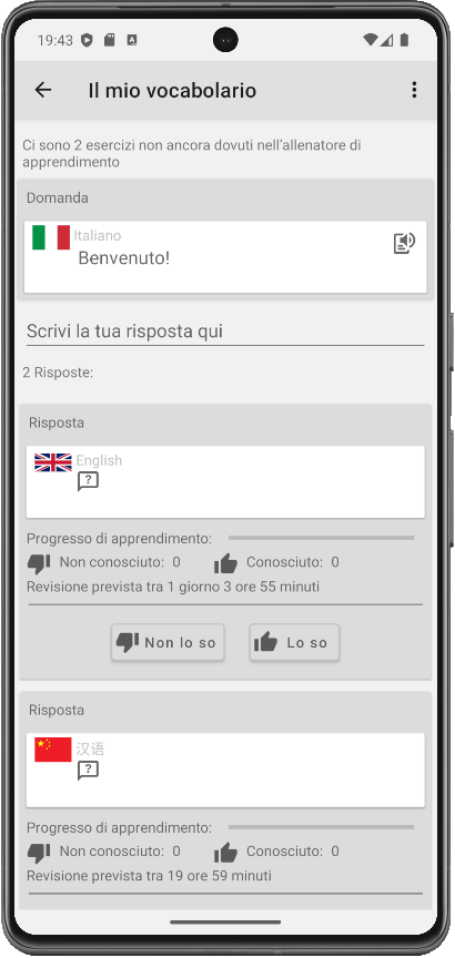 Il trainer di vocabolario ti metterà alla prova tutte le volte necessarie – e continuerà finché non avrai raggiunto il tuo obiettivo di apprendimento.